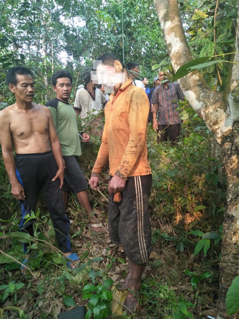 Harmain berusia (46) warga Dusun Tebat Kecamatan Muko Bathin VII Kabupaten Bungo ditemukan dalam keadaan tak bernyawah dalam kondisi tergantung terlilit tali dileher sekitar pukul 15:30 Wib tepatnya di bukit kubur pasir putih kebun karet Dusun Tebat.