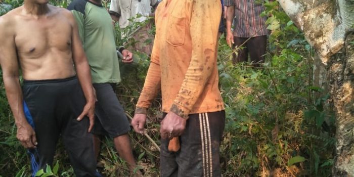 Harmain berusia (46) warga Dusun Tebat Kecamatan Muko Bathin VII Kabupaten Bungo ditemukan dalam keadaan tak bernyawah dalam kondisi tergantung terlilit tali dileher sekitar pukul 15:30 Wib tepatnya di bukit kubur pasir putih kebun karet Dusun Tebat.