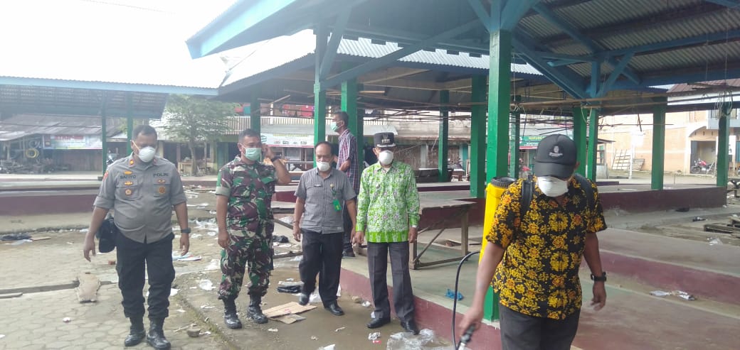 “Selain ruang perkantoran yang kita semprotkan dengan larutan cairan Desinfektan anti virus, kita juga menyemprotkan beberapa tempat umum seperti Los Pasar dan di tempat perbankan seperti BRI”, kata Sirojudin.