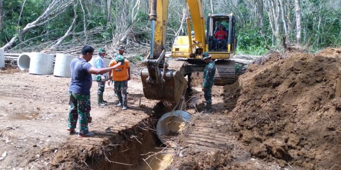 Prajurit Satgas TMMD tetap semangat bekerja keras tanpa kenal lelah bekerja menyelesaikan sasaran fisik, pemasangan gorong-gorong untuk mengejar terget yang telah di tentukan.