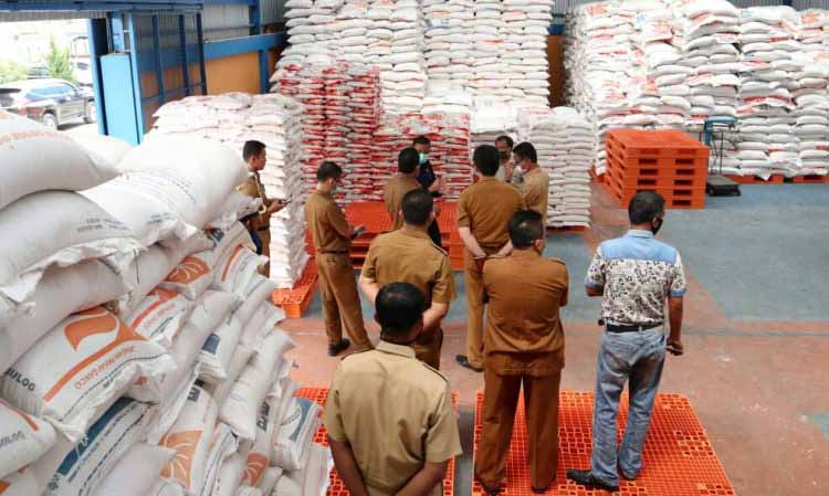 Wabup berkomunikasi dengan pihak penyedia stok beras di gudang Bulog