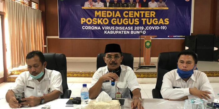NARASIJURNAL.COM, Bungo,- Info perkembangan Covod -19 di Kabupaten Bungo 15 April 2020, pasien positif terjangkit covid-19 tetap berjumlah 2 orang, pasien 1 dirawat di RSUD H.Hanafie Muarabungo dan 1 pasien dirawat di RSUD Raden Mataher Jambi. Kabupaten Bungo sendiri berada di zona kuning. Hal ini disampaikan juru bicara tim gugus tugas percepatan penanganan covid-19 Bungo dokter H.Safarudin Matondang pada konferensi pers, Rabu (15/04/2020).