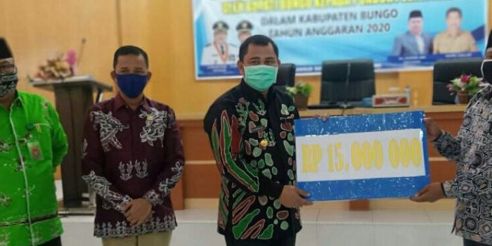 NARASIJURNAL.COM, Bungo,– Bertempat di ruang pola Kantor Bupati Bungo, Kamis (11/06/2020). Bupati Bungo H.Mashuri di dampingi Wabup H.Safrudin Dwi Aprianto, menyerahkan langsung bantuan dana hibah kepada pimpinan dari 31 Pondok Pesantren (Ponpes) di Kabupaten Bungo.