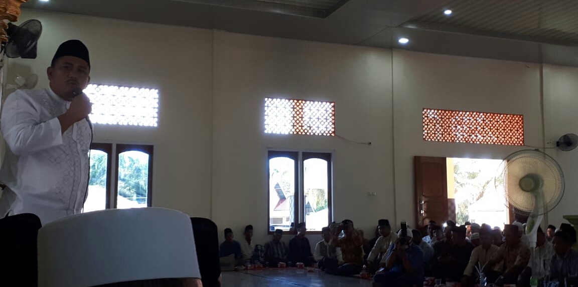 “Kito belum aman dari wabah ini, untuk itu mari jaga kesehatan kita, tetap pake masker, rajin-rajin cuci tangan pake sabun dengan air yaang mengalir”, pesan Bupati dihadapan para jamaah yang hadir. (NJ)