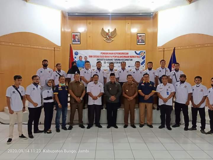 NARASIJURNAL.COM, Bungo,- Enam Kecamatan kepengurusan Karang Taruna periode 2020-2025 resmi dikukuhkan dan disaksikan Bupati Bungo H.Mashuri. didampingi Wabup H.Safrudin Dwi Apriyanto. Bertempat di ruang pola Kantor Bupati, Senin (14/09/2020).
