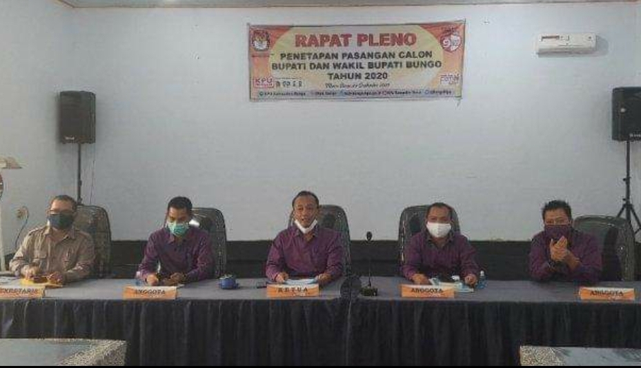 Penetapan Calon itu, melalui rapat Pleno KPUD Bungo, yang dipimpin langsung Ketua M .Bisri, didampingi para Komisioner KPU Lainnya. Juga tampak hadir Sekertaris dan panitia Verifikator penelitian berkas Bacalon. Rabu, (23/09).