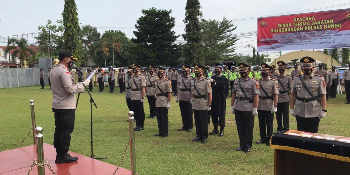 Anggota Polres Bungo agar tidak ada berpolitik atau sampai mempengaruhi bahkan melarang atau menghalangi masyarakat untuk memilih. Hal ini disampaikan Kapolres Bungo AKBP Mokhmad Lutfi S.I.K usai memimpin prosesi Serah Terima Jabatan (Sertijab) di Lapangan Mapolres Bungo, Selasa (29/09/2020).