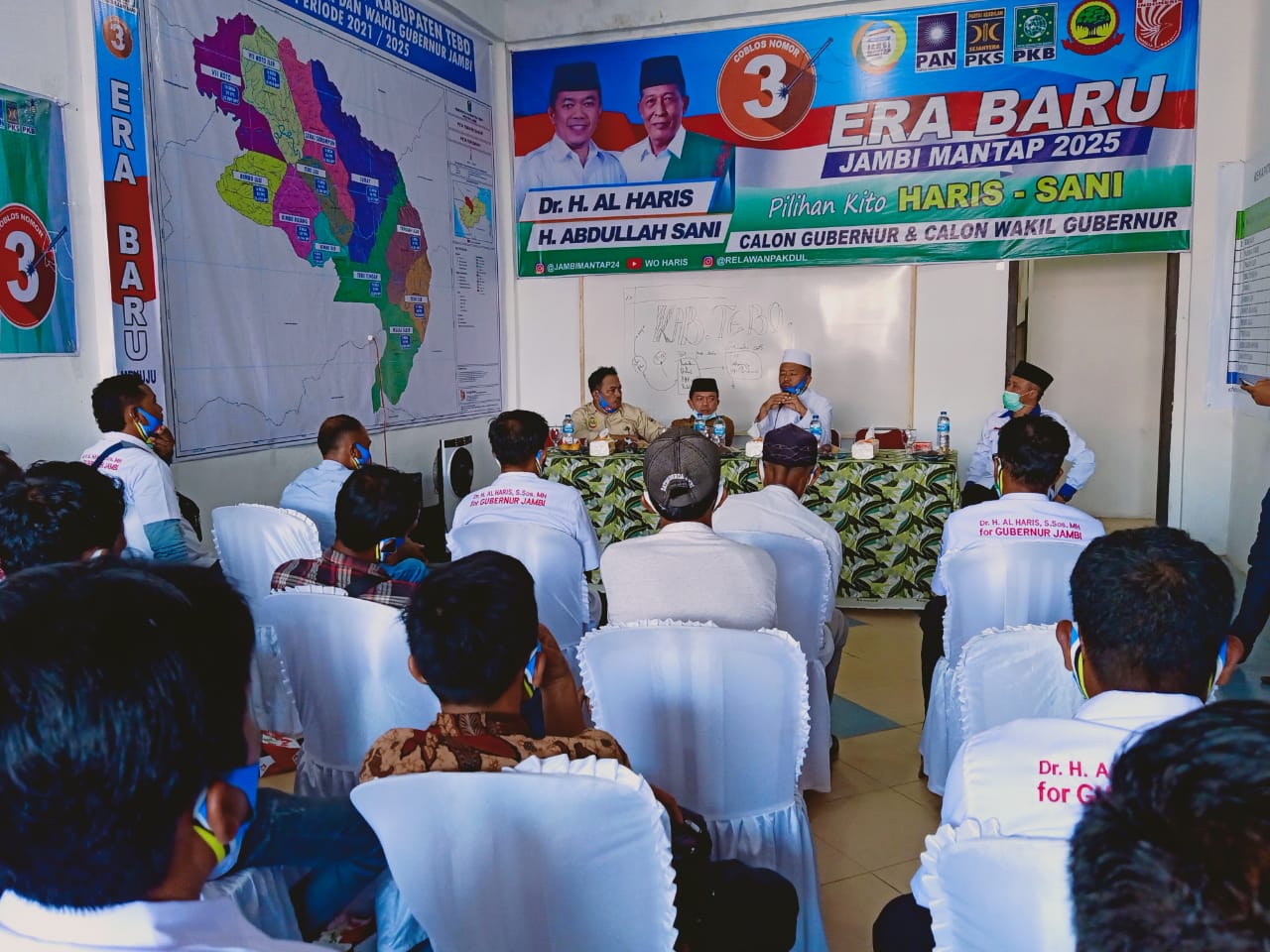 Pengukuhan tim Pemenangan Haris-Sani Kecamatan Tebo Tengah, Kecamatan Sumay dan Kecamatan Rimbo Ilir di Kota Tebo ini juga dihadiri KH Fauzi Mansyur, pimpinan Ponpes Nurul Jalal.