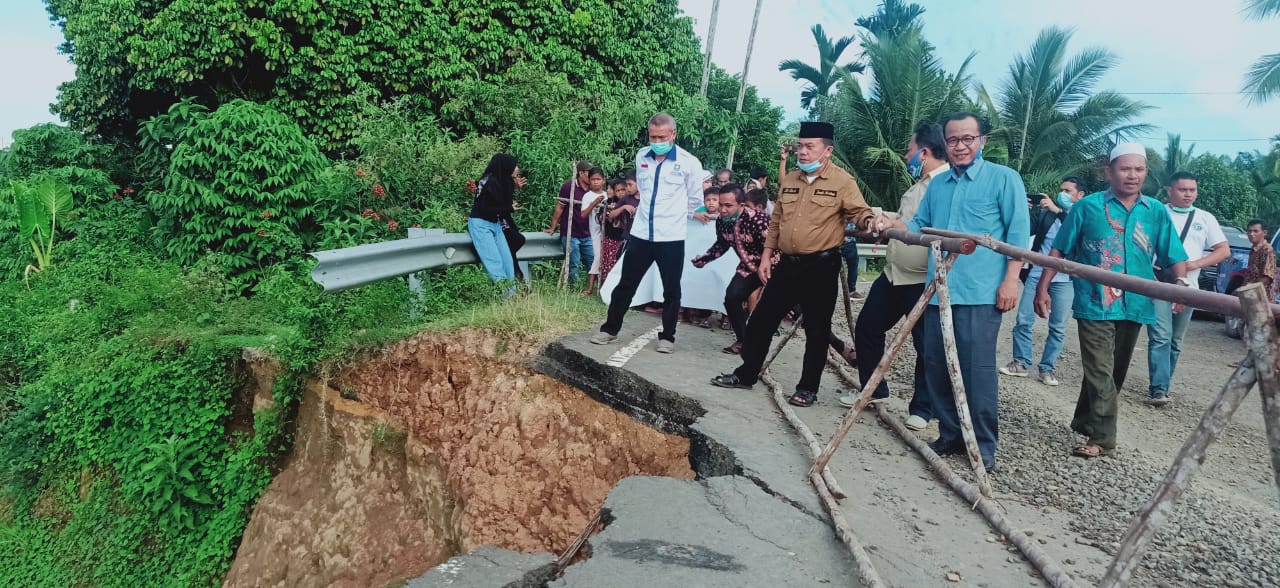 Al Haris meninjau titik rawan jalan provinsi yang tergerus sungai Batang Hari. Warga menyebutkan jalan tersebut semakin menyempit dan terancam amblas jika tidak ditangani pemerintah provinsi.