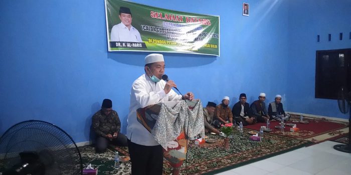 “Insya Allah 9 Desember kito satukan pilihan, bagi santri yang sudah milih dan orang tuo santri jangan salah pilih, kito pilih Al Haris,” sebutnya.