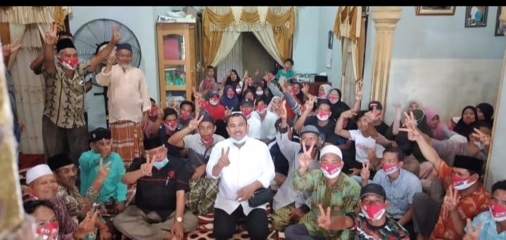 Calon Bupati Bungo Nomor 2 H Mashuri photo bersama dengan tokoh masyarakat, pemuda dan mak-mak Dusun Tebing Tinggi, Kecamatan Tanah Sepenggal Lintas, Kamis (6/11). Mereka menyatakan siap memenangkan pasangan Hamas-Apri pada Pilkada 09 Desember 2020.
