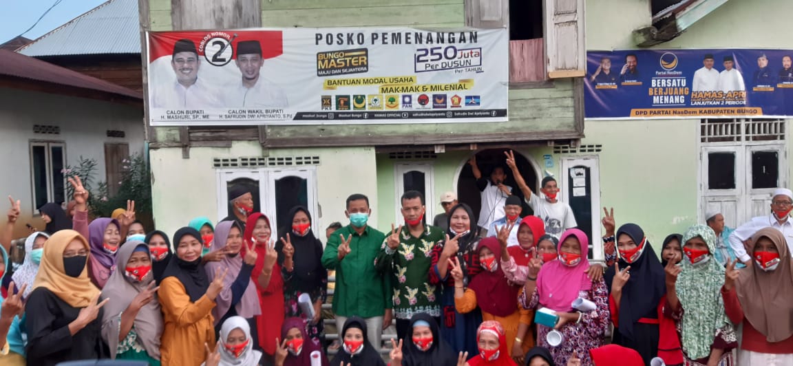 NARASIJURNAL.COM, BUNGO – Dukungan terhadap pasangan Hamas-Apri tidak mengenal basis lawan. Masyarakat tetap berbondong-bondong menyatakan kesiapan memenangkan pasangan Hamas-Apri pada pemilihan 9 Desember nanti.