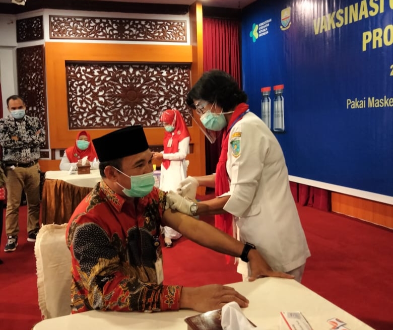NARASIJURNAL.COM, JAMBI – Sejumlah pejabat dan tokoh masyarakat Provinsi Jambi yang telah menerima vaksin Covid-19 tahap pertama pada tanggal 14 Januari lalu, hari ini (28/01/2021) Kembali disutik vaksin untuk dosis ke-2.