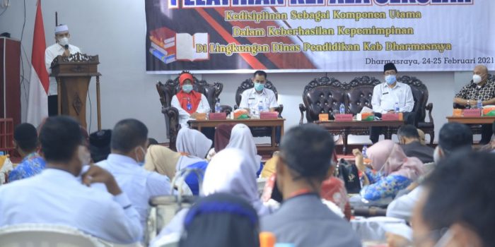 NARASIJURNAL.COM – DHARMASRAYA – Ratusan Kepala Sekolah di lingkup Dinas Pendidikan Kabupaten Dharmasraya diberi pelatihan bertema Kedisiplinan sebagai Komponen Utama dalam Keberhasilan Kepemimpinan, Rabu (24/02/21). Kegiatan pelatihan yang dilaksanakan di Ruang Pertemuan Hotel Umega Gunung Medan itu akan berlangsung selama dua hari (24-25 Februari), dan menghadirkan narasumber dari Sekolah Insan Cendekia Madani BSD, Tanggerang.
