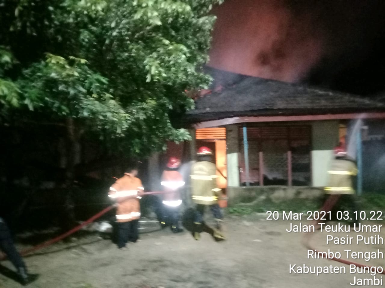 NARASIJURNAL.COM, BUNGO – Karena penghuninya tidak mengetahui nomor kontak pemadam kebakaran, ditambah api dengan cepat menyambar bangunan, sehingga dua rumah bedeng yang terletak di jalan Tengku Umar, Lorong Air Bersih, Kelurahan Pasir Putih, Kecamatan Rimbo Tengah Kabupaten Bungo ludes terbakar, sekira pukul 02: 58 Wib, Sabtu (20/03/2021)
