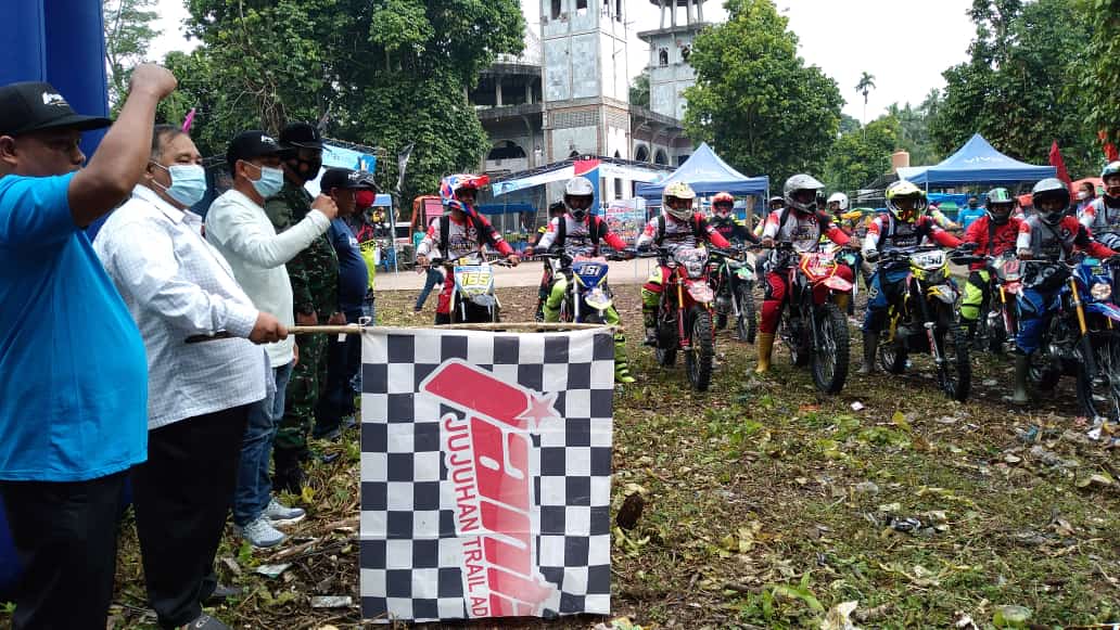 NARASIJURNAL.COM Bungo-Sebanyak 192 para motor trail adventure tiga Provinsi pada hari minggu 28/3/2021 adu nyali dalam menjelajah alam wisata dan perkebunan Ujung Tanjung ,