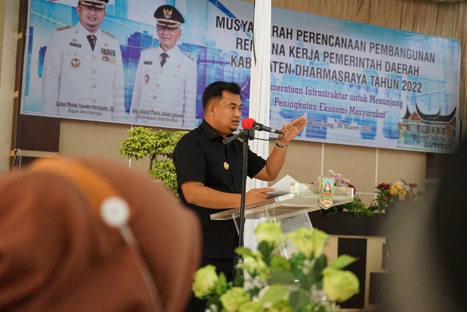 NARASIJURNAL.COM-DHARMASRAYA – Bupati Dharmasraya, Sutan Riska Tuanku Kerajaan, membuka secara resmi Musrenbang RPKD (Rencana Kerja Pembangunan Daerah) Kabupaten Dharmasraya Tahun 2022, di Auditorium Kantor Bupati Dharmasraya, Selasa (30/2/21). Musrenbang ini turut dihadiri Wakil Bupati, DP Datuk Labuan, Pimpinan dan Anggota DPRD, Forkopimda, Sekretaris Daerah, Perwakilan Bappeda Provinsi Sumbar, Bapppeda Kabupaten tetangga, serta para pejabat eselon II, III dan IV, para camat, wali nagari dan sejumlah undangan lainnya.