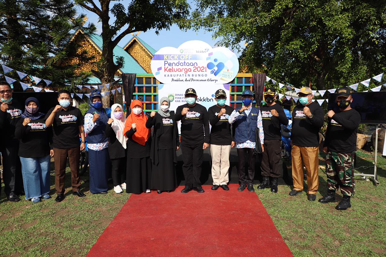 NARASIJURNAL.COM, Bungo – Bupati H Mashuri dan Wakil Bupati Bungo H Safruddin Dwi Aprianto menghadiri acara Kick Off/Launching Pendataan Keluarga 2021 Kabupaten Bungo, di Taman Rumah Dinas Bupati Bungo, Bungo, Selasa (30/3/2021).