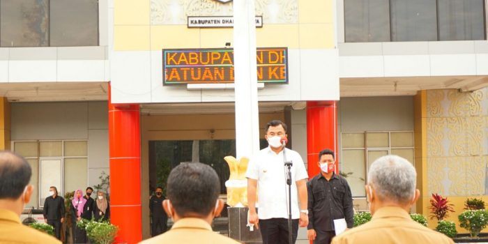 Dharmasraya – Saat apel gabungan seluruh Aparatul Sipil Negara (ASN) di Kabupaten Dharmasraya pada, Senin (05/04/21) dihalaman Kantor Bupati Dharmasraya, Bupati Dharmasraya, Sutan Riska Tuanku Kerajaan menghimbau kepada Satgas Covid 19 tingkat kabupaten Dharmasraya agar terus melakukan koordinasi dengan jajaran kepolisian. Bertujuan untuk pengawasan tentang penyebaran dan penanganan covid 19 di Dharmasraya.