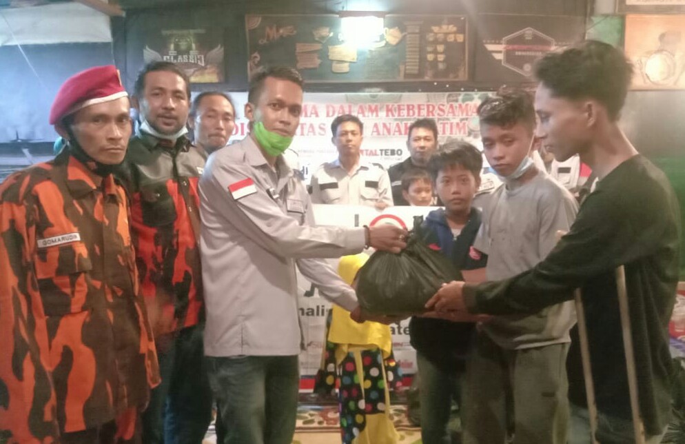 Dalam kegiatan tersebut, DPD JOIN Tebo dan Organisasi lainnya membagikan paket sembako kepada penyandang disabilitas dan anak yatim.