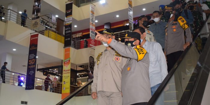 NARASIJURNAL.COM, JAMBI – Kepala Kepolisian Daerah (Kapolda) Jambi Irjen Pol A Rachmad Wibowo bersama Walikota Jambi H SY Fasha meninjau langsung pusat keramaian khususnya beberapa Mall besar yang ada di Kota Jambi, Minggu (02/5/21).