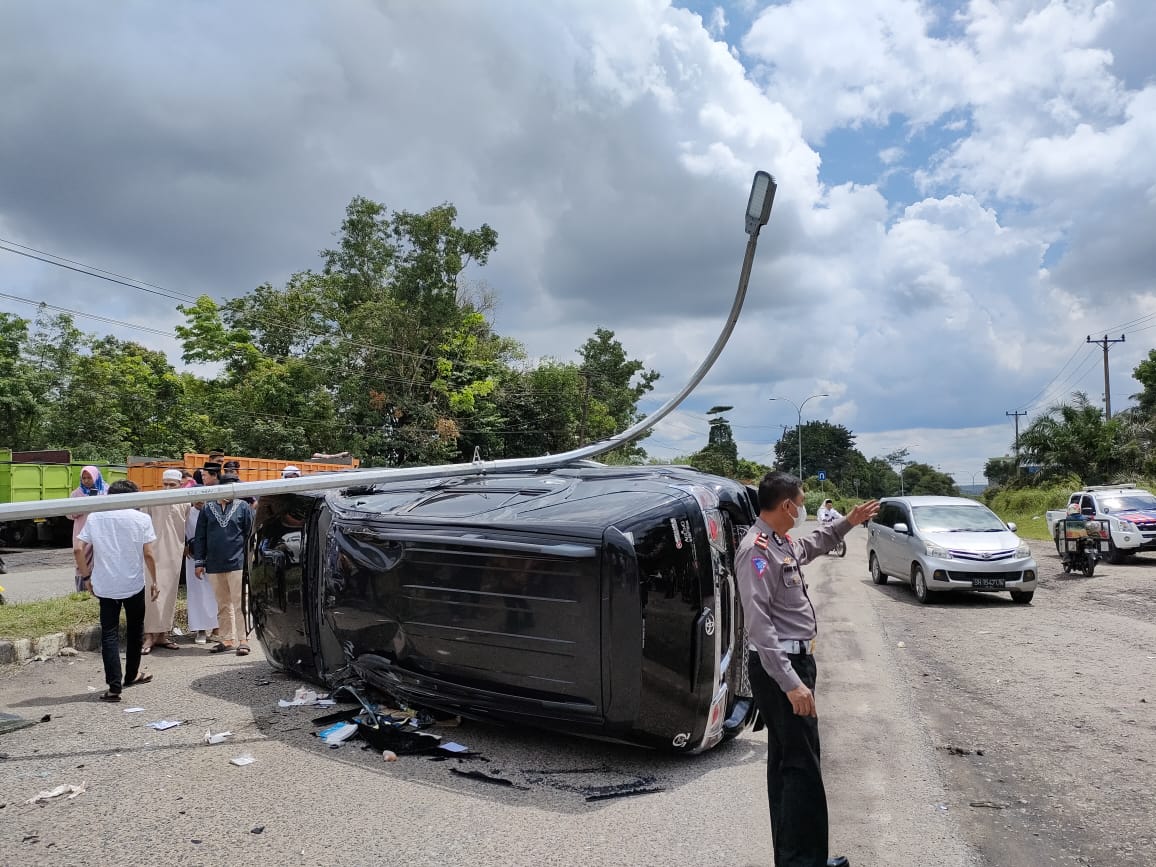 Kanit Laka IPDA. Agus Puji Santoso saat dikonfirmasi, membenarkan kejadian Laka tunggal tersebut, Kendaraan minibus Jeep Toyota Fortuner datang dari arah Bangko menuju arah Muara Bungo