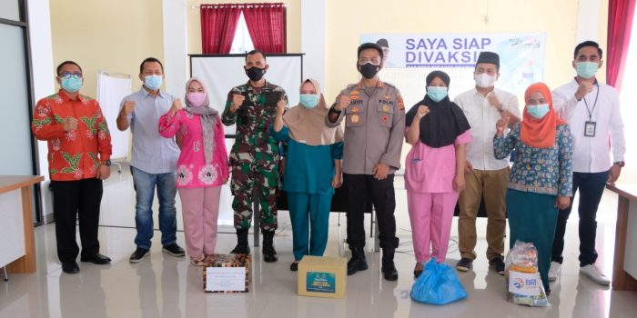 NARASIJURNAL.COM, BUNGO – Beri motivasi kepada tenaga kesehatan yang bertugas oenganan Covid-19 di RSUD H Hanafie Muara Bungo. Kapolres Bungo, AKBP Mokhamad Lutfi, Dandim 0416/Bute Letkol Inf Arianto Maskare Subagio, Kajari Bungo Sapta Putra, dan Bank BRI, sambangi rumah sakit umum daerah, (RSUD Muara Bungo, Sabtu (15/05/2021).