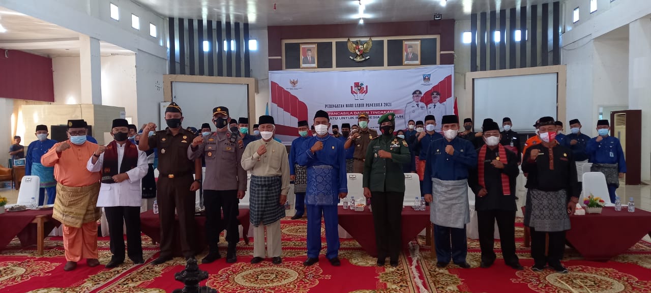 Sedangkan dari Pemkab Dharmasraya, upacara secara virtual tersebut dihadiri oleh Ketua DPRD Dharmasraya, Pariyanto, Asisten, Staff Ahli, TNI, Polri, Kepala OPD, LKAAM, MUI, dan Kabag dilingkup Pemkab Dharmasraya ynag digelar di Auditorium Kantor Bupati Dharmasraya.
