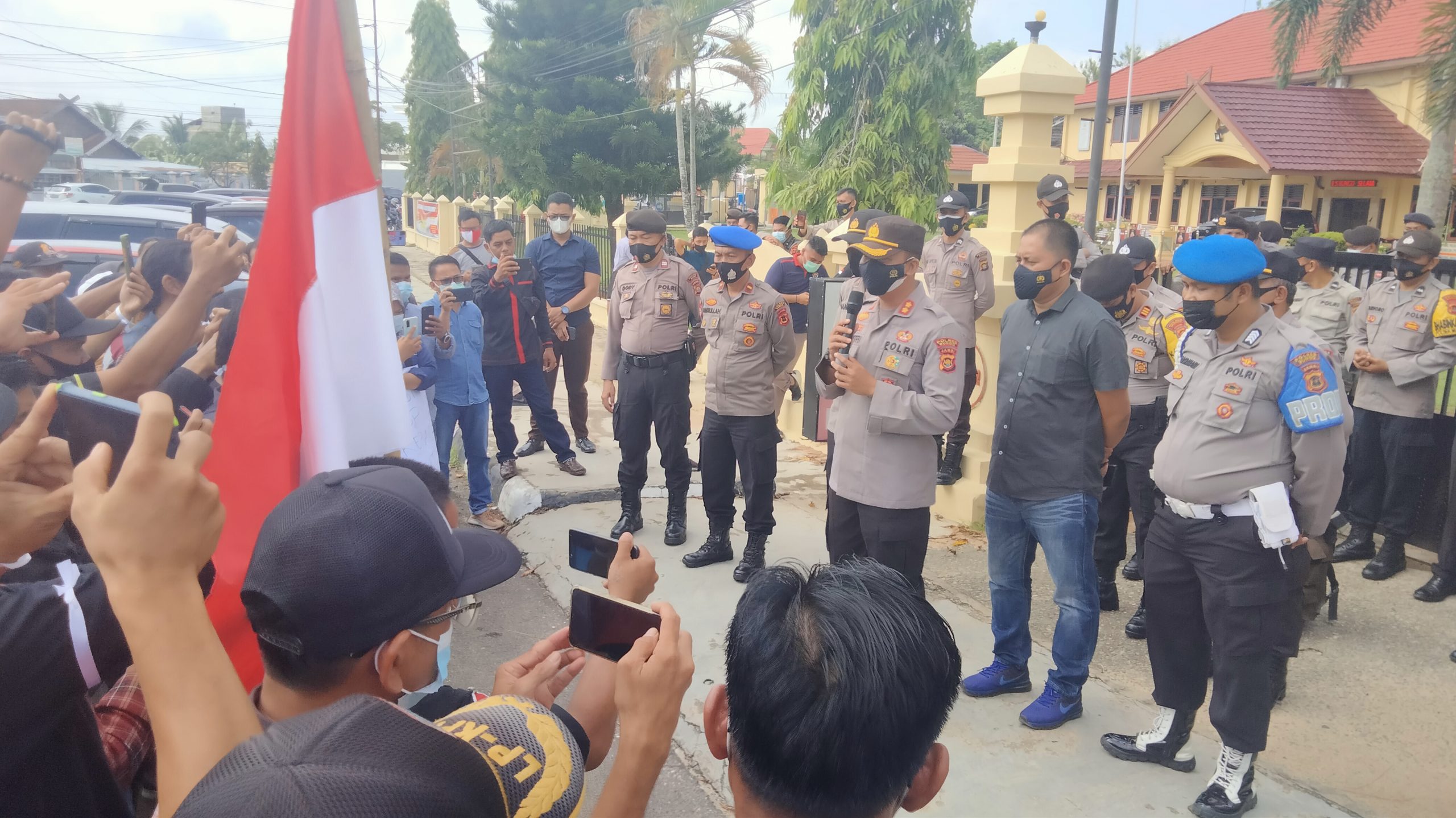 Usai orasi, Kapolres Bungo mempersilahkan para perwakilan dari gabungan organisasi Pers Kabupaten Bungo untuk masuk ke Mapolres Bungo untuk melakukan mediasi.