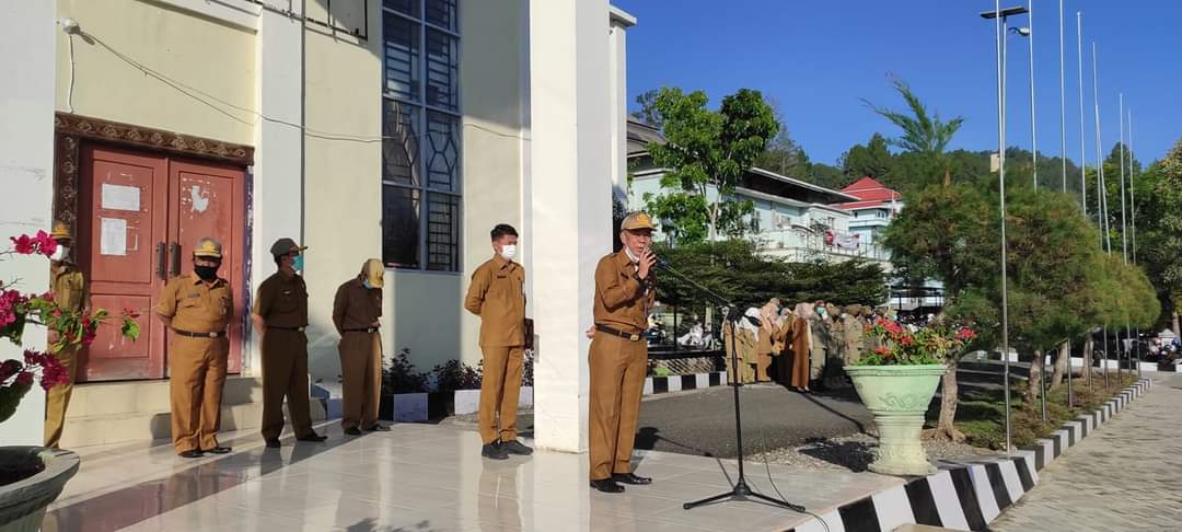 Dalam arahannya, Pj. Sekda Alpian, SE.,MM mengingatkan kepada seluruh ASN untuk kembali bekerja seperti biasanya sesuai tupoksi dan bertanggung jawab sebagai seorang aparatur sipil negara,walaupun dimasa pandemi covid -19.