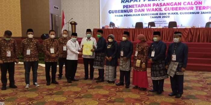 NARASIJURNAL.COM, JAMBI- Pasangan calon Gubernur dan wakil Gubernur Jambi Al Haris – Abdullah Sani secara sah dan resmi ditetapkan Komisi Pemilihan Umum (KPU) provinsi Jambi sebagai Gubernur dan wakil Gubernur Jambi terpilih.