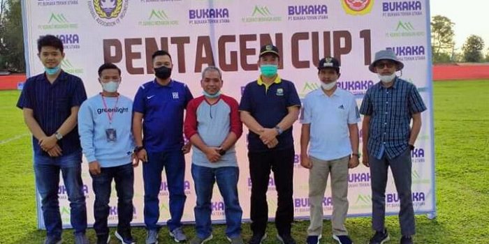Usai membuka secara resmi Turnamen Pentagen Cup I, acara kemudian dilanjutkan dengan tendangan bola pertama oleh Sekda Asraf sebagai tanda dimulainya turnamen ini dan foto bersama. (adv)