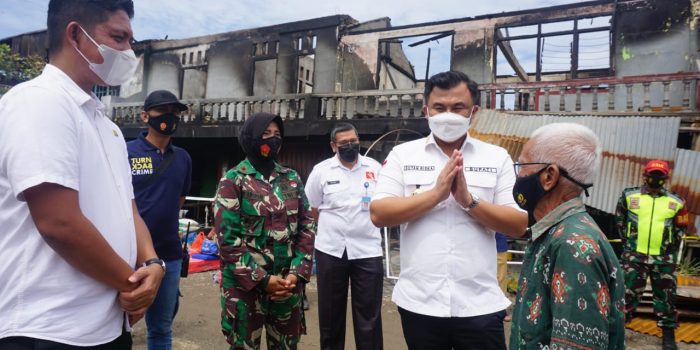 DHARMASRAYA – Enam ruko (rumah toko) di Pasar Tradisional Koto Agung Blok B Sitiung 1, Nagari Sungai Duo, Kecamatan Sitiung, hangus terbakar, Selasa (29/6/2021) malam. Merespon terjadinya musibah tersebut, Bupati Dharmasraya, Sutan Riska Tuanku Kerajaan, langsung meninjau ke lokasi kejadian, Rabu (30/6/21).