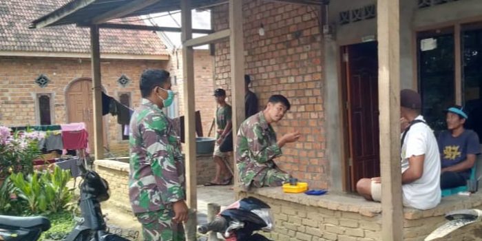 NARASIJURNAL.COM, TEBO – Personil satgas TMMD ke-112 Kodim 0416/Bungo Tebo, sedang mengobrol santai dan lakukan kedekatan dengan warga sekitar lokasi pra TMMD begitu akrab, sambil minum secangkir kopi yang sudah disiapkan oleh pemilik rumah di Kelurahan Sungai Bengkal, Kecamatan Tebo Ilir,
