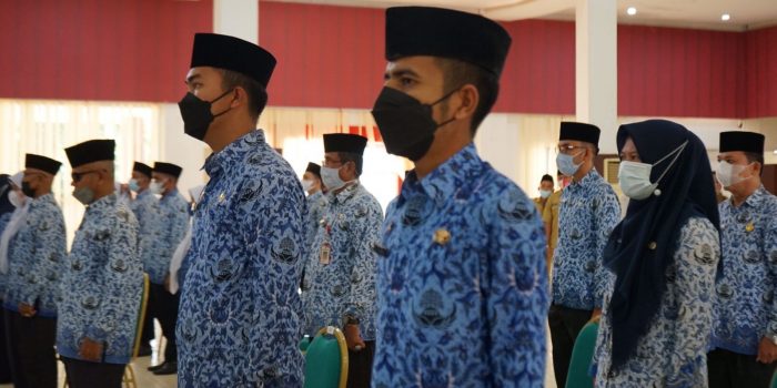 DHARMASRAYA – Bupati Sutan Riska Tuanku Kerajaan, melantik dan mengambil sumpah 44 pejabat administrator dan pengawas di lingkungan Pemkab Dharmasraya. Prosesi pelantikan dan pengambilan sumpah ini dilaksanakan di Auditorium Kantor Bupati Dharmasraya, Senin (6/9/21).