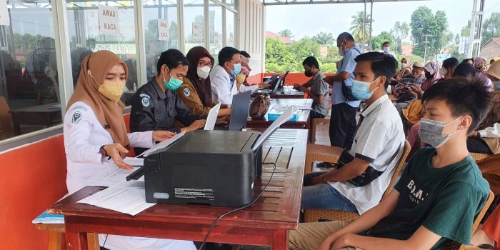 NARASIJURNAL.COM, BUNGO- Sukses, program vaksinasi secara massal gratis berjalan dengan lancar, digelar di Halaman Kampus STKIP Muarabungo, Senin (6/09/2021).