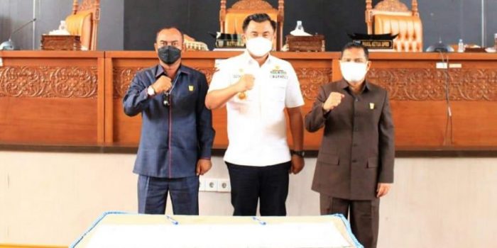 Dalam sambutannya Bupati menyampaikan “Penetapan Ranperda yang kita selesaikan pada hari ini telah melalui mekanisme ketentuan yang berlaku, yang dimulai dari pembahasan Perubahan KUA dan PPAS bersama Badan Anggaran DPRD dengan Tim Anggaran Pemerintah Daerah, pengajuan Perubahan RKA, sampai pada kegiatan asistensi RKA antara SKPD pengelola kegiatan dengan TAPD maupun antara SKPD dengan Komisi-komisi DPRD.