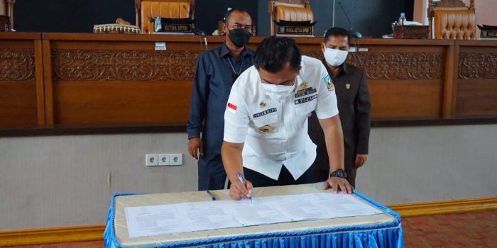 DHARMASRAYA – Pemerintah Kabupaten Dharmasraya dan DPRD Kabupaten Dharmasraya sepakat mengesahkan Ranperda Perubahan Anggaran Pendapatan Belanja Daerah (APBD) Kabupaten Dharmasraya Tahun 2021 menjadi Peraturan Daerah (Perda). Pengesahan itu dilakukan dalam Rapat Paripurna yang digelar di Sekretariat DPRD Kabupaten Dharmasraya, Selasa (7/9/21). Dalam kesempatan rapat paripurna yang dipimpin oleh Ketua DPRD Kabupaten Dharmasraya, Paryanto, Perubahan APBD Kabupaten Dharmasraya tahun 2021 ditetapkan sebesar Rp 988,3 milyar.