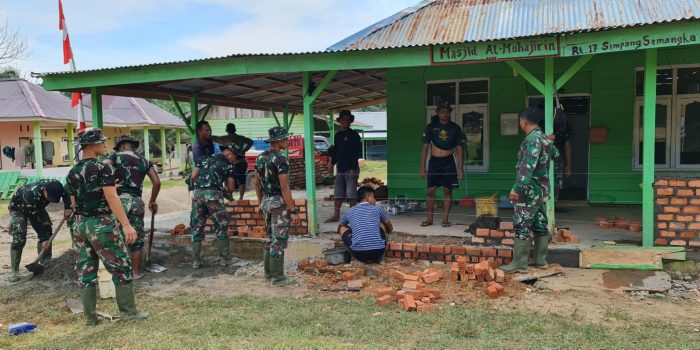 Dikatakan, masjid merupakan tempat ibadah bagi umat muslim, mengingat pentingnya keberadaan masjid bagi masyarakat maka satgas memasang baru bata. Dimana sebelumnya, masjid tersebut hanya berdinding papan, dengan ada program ini, maka masjid itu akan di rehab lebih bagus lagi.