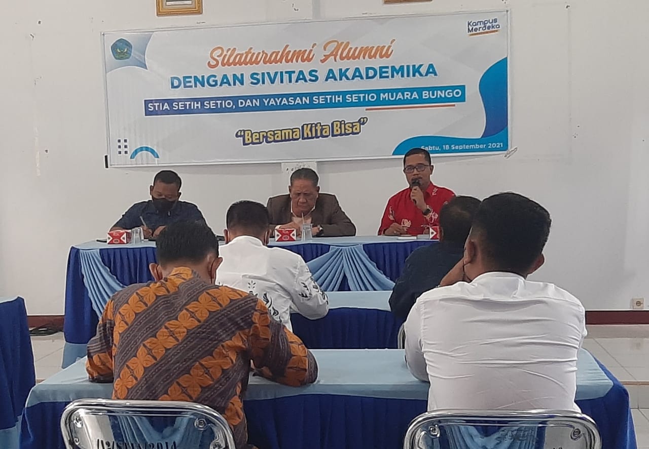 Hadir pada kesempatan itu Ketua Alumni STIA SS Muarabungo periode 2019-2023 Yatno bersama pengurus lainnya. Pertemuan itu juga di hadiri Ketua Yayasan Setih Seto Muarabungo H.Muzni, H.A Djalil, tampak hadir Wakil Ketua III Bidang Kemahasiswaan Nanang Al Hidayat.