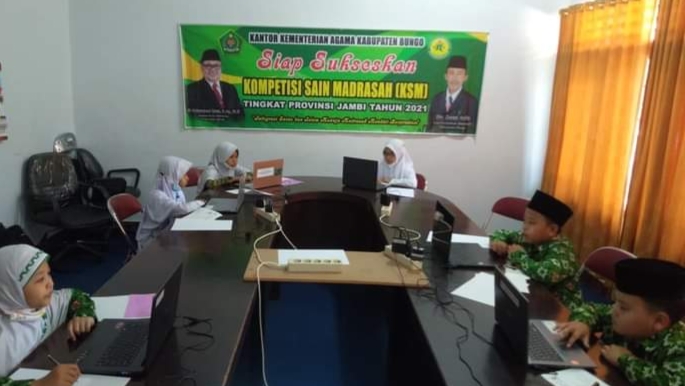 Setelah lolos di tingkat Kabupaten, Siswa MIN 1 Bungo melaju ke tingkat Provinsi Jambi untuk mengikuti KSM. Kegiatan di gelar secara online di Kantor Kemenag Bungo pada 20 September 2021.