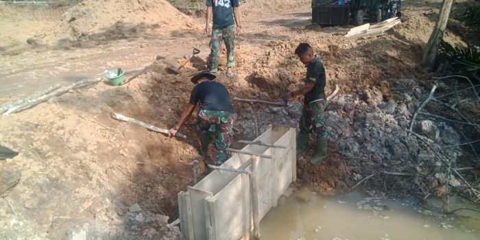 “Pengecoran penahan tanah di gorong-gorong terpasang, untuk menahan gorong-gorong agar tidak goyang setelah dipasang. Sekaligus untuk menahan tanah saat hujan tidak terkikis,” ungkap Pasiter Kodim 0416/Bute, Kapten Inf Adiral Nursal. Sabtu (25/9)