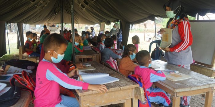 Salah satu Guru, Ika Pratiwi mengatakan, meski belajar di bawah tenda darurat tapi anak-anak tetap semangat. Karena mereka sadar bangunan sekolah lama sedang direhab oleh TNI. Karena mereka tahu gedung direhab jadi tetap belajar.