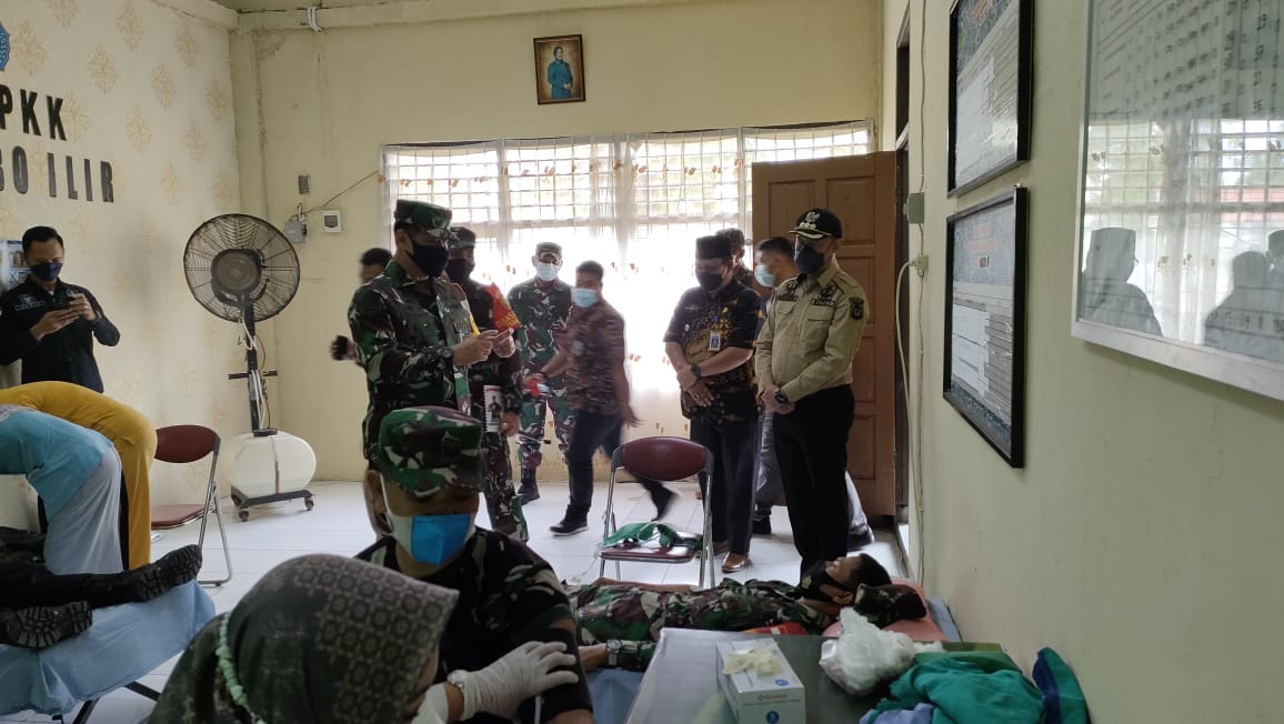 NARASIJURNAL.COM, TEBO – Tim Wasev Mayjen TNI Tri Yuniarto, S.AP.,M.Si.,M.Tr (Han) PA. Sahli Tak III KASAD, bersama Danrem 042/Gapu, Brigjen TNI M.Zulkifli, S.IP.,M.M. Pantau kegiatan donor darah rangkaian TMMD ke-112 Kodim 0416 Bute di aula kantor camat Tebo Ilir, Kamis (30/09/2021).