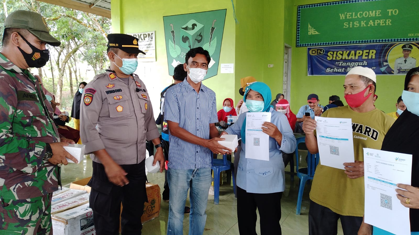 Antusias warga mengikuti vaksinasi kali ini mencapai 400 orang, dipantau oleh Camat Syafrizal di dampingi Kapolsek Jujuhan AKP. Wibisono, Bhabinkamtibmas, Babinsa dan kepala Puskesmas Rantau Ikil Masajaya.