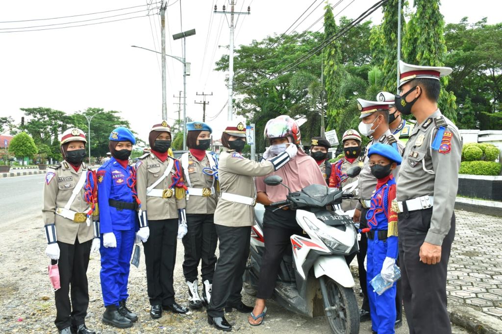 Selain itu, dalam aksinya membagikan masker kepada pengguna kendaraan yang melintas di Jalan Lintas Sumatera Kecamatan Pulau Punjung.