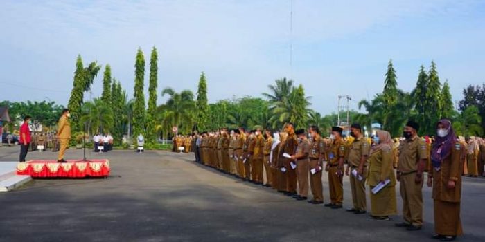NARASIJURNAL.COM, Bungo- Bupati Sutan Riska Tuanku Kerajaan, mengingatkan Aparatur Sipil Negara (ASN) di lingkup Pemkab Dharmasraya untuk disiplin dalam bekerja. Hal ini disampaikan secara tegas oleh Bupati saat memimpin Apel Gabungan di halaman Kantor Bupati Dharmasraya, Senin (4/10/21).