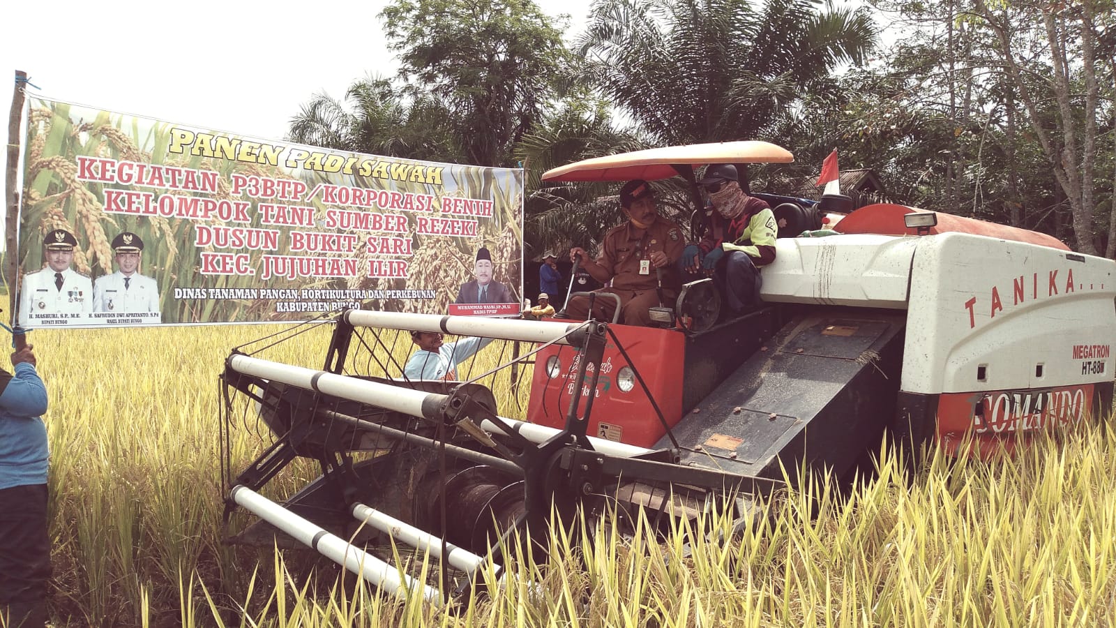 Kadis TPHP Bungo Muhammad Hasbi membuka secara simbolis panen padi sawah penangkar di kelompok sumber rizki seluas 10 hektar. Pada kesempatan itu, Kadis TPHP di dampingi camat Jujuhan Ilir yang diwakili oleh sekretaris Asnawi dan para staf juga rio bukit sari Suyanto dan ketua kelompok tani sumber rizki dan kepala UPTD penyuluh pertanian kecamatan jujuhan ilir Yusdi.