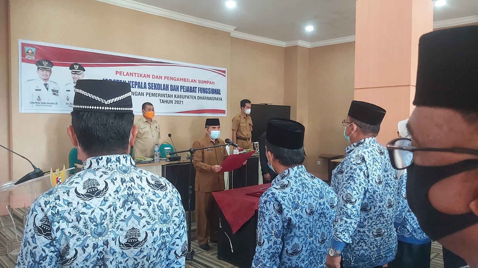 NARASIJURNAL.COM, DHARMASRAYA – Sekretaris Daerah Kabupaten Dharmasraya, Adlisman, melantik dan mengambil sumpah jabatan Pejabat Fungsional di lingkungan Pemerintah Kabupaten Dharmasraya, Selasa (5/10/21).