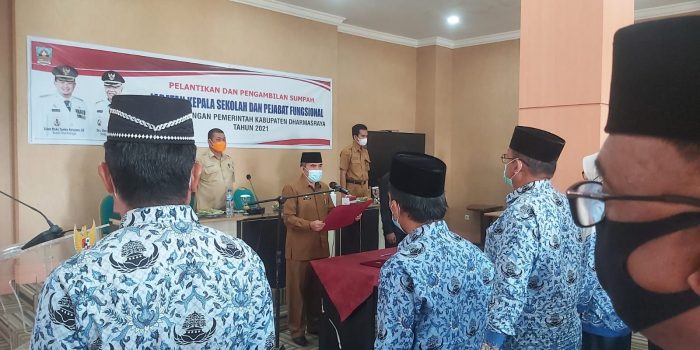 NARASIJURNAL.COM, DHARMASRAYA – Sekretaris Daerah Kabupaten Dharmasraya, Adlisman, melantik dan mengambil sumpah jabatan Pejabat Fungsional di lingkungan Pemerintah Kabupaten Dharmasraya, Selasa (5/10/21).